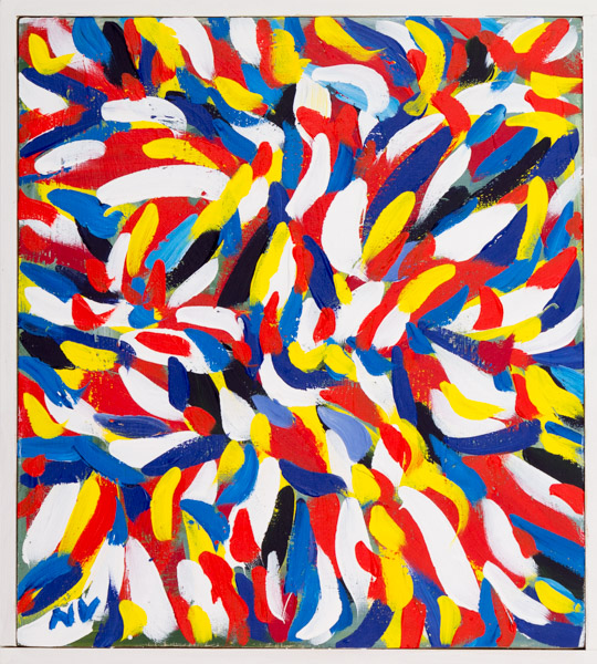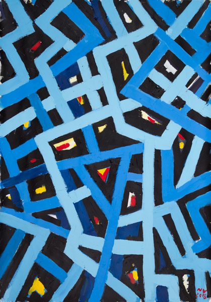 Techniques: works on paper/newspaper (India ink, mixed media, acrylic), acrylic on wood, acrylic on canvas, collages.