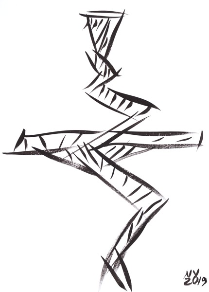 Techniques: works on paper (India ink, mixed media) and sculptures.